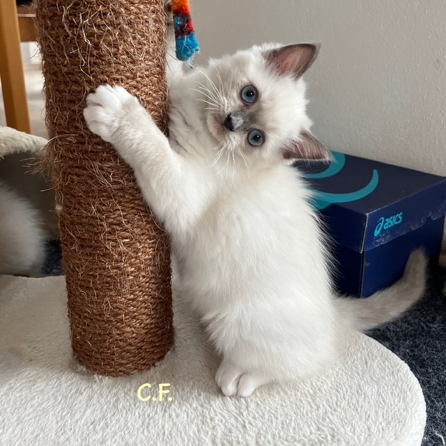 Willow vom Heißen Bäumchen Geschlecht:weiblich Farbe/Zeichnung:blue point mitted (RAG a04) Status:vergeben an Anne und Denis mit Matilda und Lene AlleW-Wurf Wookie Woody Wilma Whisper Willow Wendy