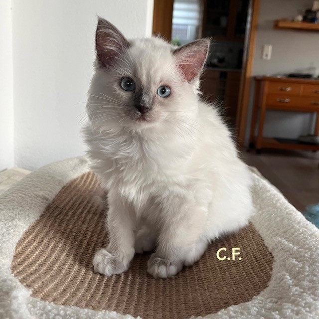 Woody vom Heißen Bäumchen Geschlecht:männlich Farbe/Zeichnung:blue point mitted (RAG a04) Status:vergeben an Julia, Alex und Emma mit Isaak AlleW-Wurf Wookie Woody Wilma Whisper Willow Wendy