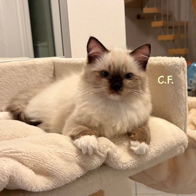 Xena vom Heißen Bäumchen Geschlecht:weiblich Farbe/Zeichnung:seal point mitted (RAG-n-04) Status:vergeben an Natalie und Nico AlleX-Wurf Xena