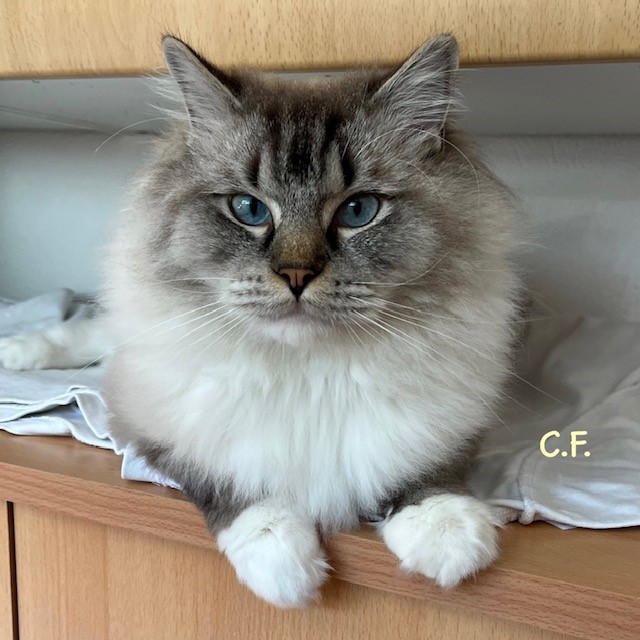 Yoshi Zucht Lazur Eyes PL Geschlecht männlich Geburtsdatum 10.04.2024 Farbe/Zeichnung seal lynx point mitted (RAG n 04 21) Blutgruppe FIV negativ FelV negativ HCM 1 + HCM Ragdoll negativ PKD-Test negativ pd-PRA negativ VenusKatze YoshiKater RaikaKatze NalaKatze MinuKatze